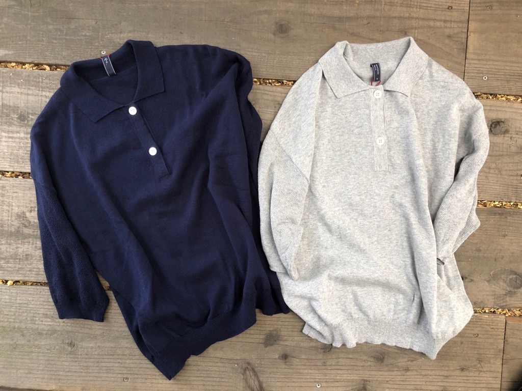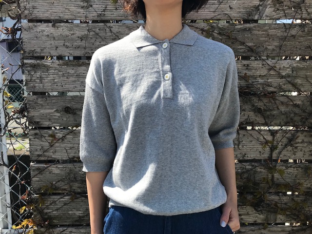 袖の切替が可愛い綿ニットポロ