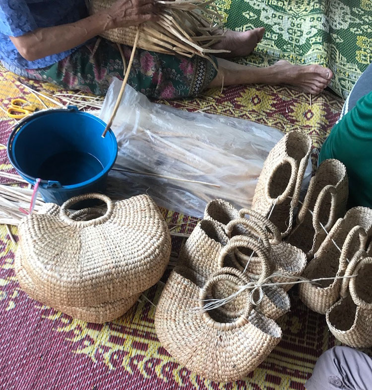 パンダンの葉を乾燥させて色付けし、
