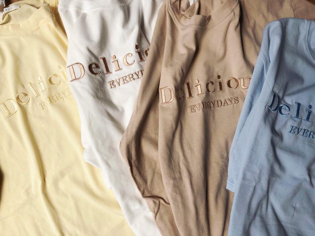 パステルカラーが印象的 Delicious ロゴT